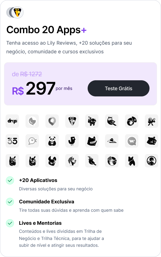 O Nível 1 é grátis por três dias, para você experimentar as funcionalidades do Lily Reviews.