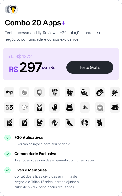 O Nível 1 é grátis por três dias, para você experimentar as funcionalidades do Lily Reviews.